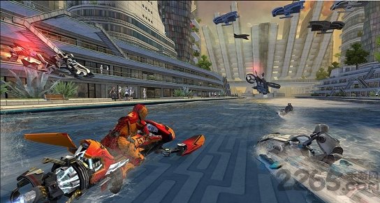 在城市河道、工厂废墟等水上赛道中非法竞技,体验构思巧妙的秘密捷径,极高破坏率的动态障碍,丰富的竞技系统