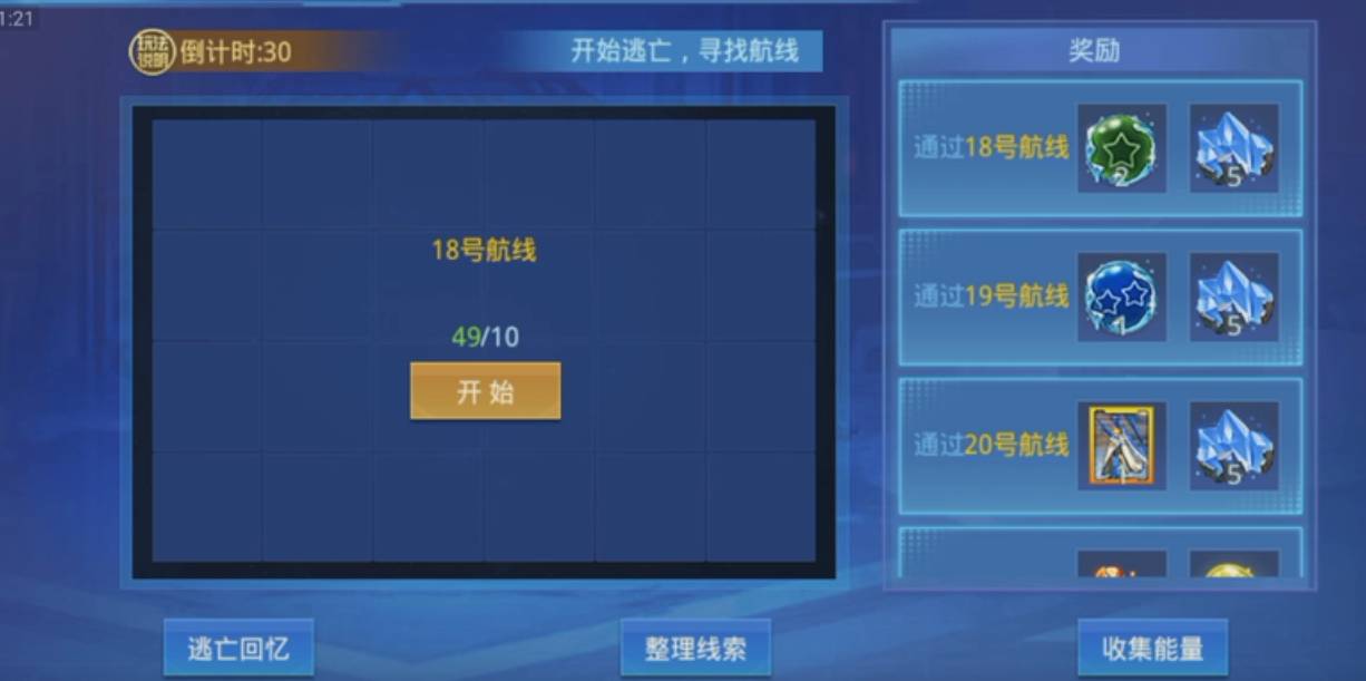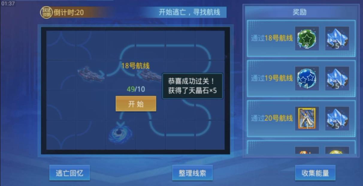 1、在游戏“时空猎人”游戏,通过逃亡之路18航线可以获得5个水晶和2个霜冻之核。