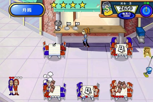 客人叫唤服务的时候,迅速走到客人桌子前,与客人对话并给予客人他们想要的食物,这样钱库的钱就会增加啦!
