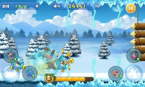 1、森林里突然出现了无数的金币和宝物不知道是什么时候,还有很多有趣的小道具让我们的熊主人公变得很幸福