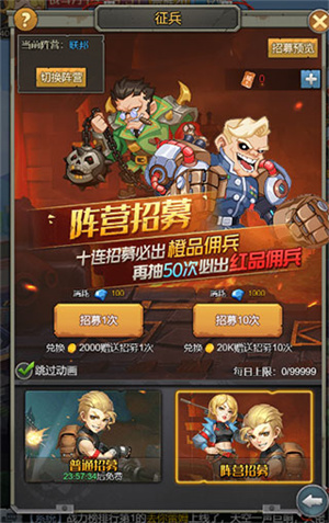 征兵获取:通过普通招募可获取随机阵营佣兵,通过阵营招募可获去定向阵营佣兵,最高品质都是红色。