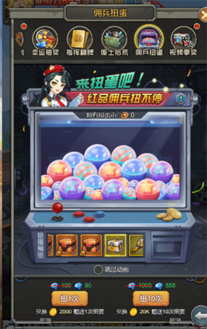 扭蛋获取:佣兵扭蛋是主要的红将宝箱获取途径,使用扭蛋币进行获取,扭蛋币可在信物商店获取。
