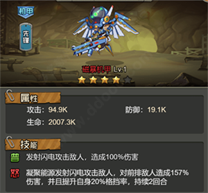 2、怒:凝聚能源发射闪电攻击敌人,对前排敌人造成157%伤害,并且提升自身20%格挡率,持续2回合