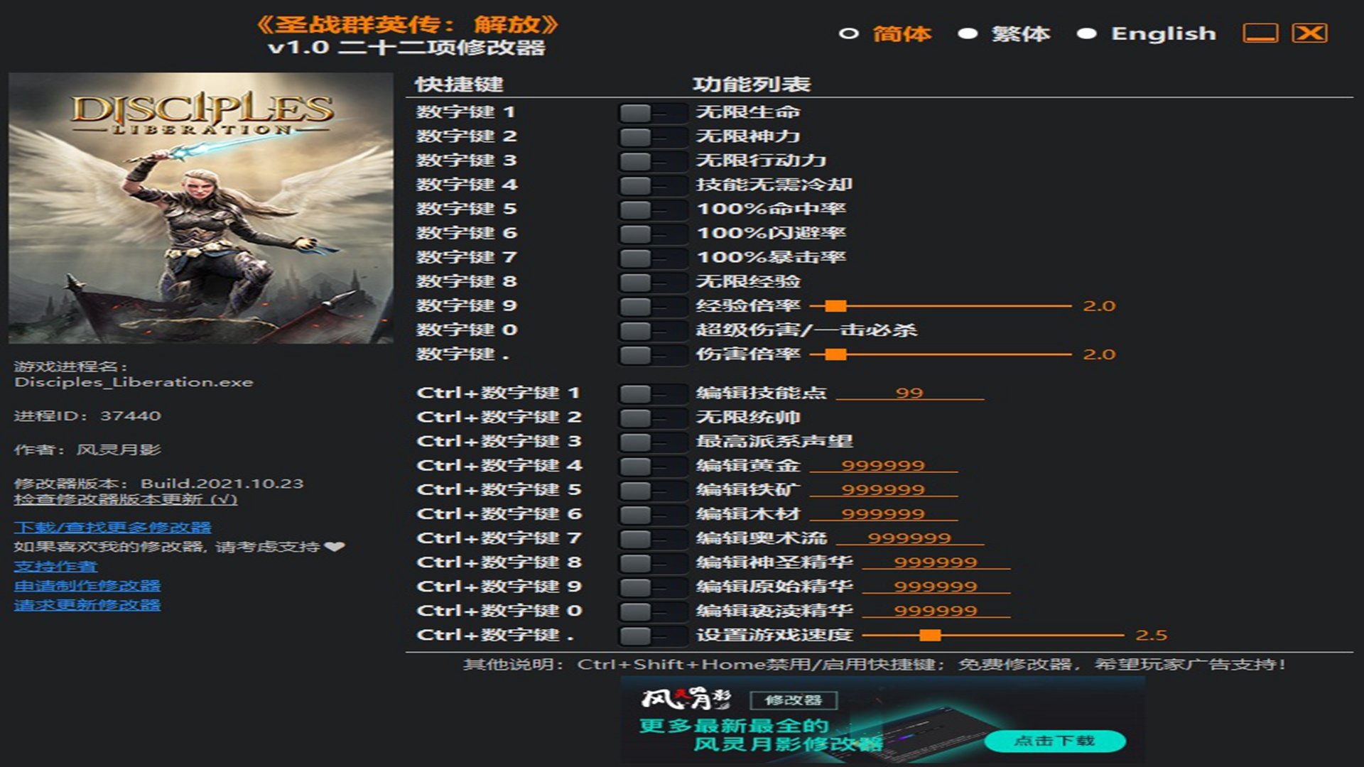 圣战群英传二十二项修改器可以说是一个散财童子,能给大家编辑黄金的功能,财产再也不是你障碍。战斗方面,获得相当于伏地魔索命咒语一样,可以对敌人进行一击必杀。几十项功能等你发掘,喜欢的小伙伴,点击下载感受吧。