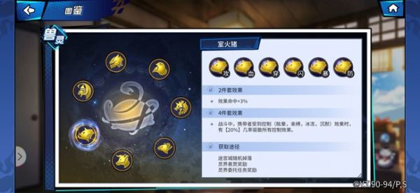 当面对敌人的控制无从反抗的时候,就要室火猪出场了,其4件套效果是携带者受到控制效果时,有20%几率驱散所有控制效果,当遇到控制较多的关卡或者PVP走咒术控制流的队伍时,不用考虑,室火猪一定是必备的兽灵啦。