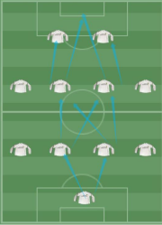 442 右长传主要路线,(左长传镜像同理),右个人/短传会有更多的左中场,右前锋参与