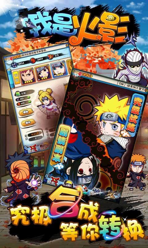 我是火影官网版是一款策略类游戏,游戏中,玩家可以体验到火影忍者中的超多角色,以及根据漫画剧情开发的丰富玩法。游戏玩法包括战斗、养成、收集等,不仅考验玩家的战斗技巧,也考验玩家的策略和运营能力。