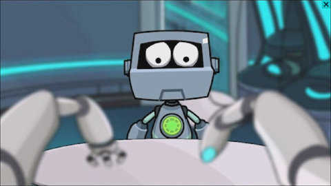 6、进入后没有什么有价值的东西,再往右拖动场景。这时又进入一段剧情,剧情完毕后把背包里的”简易晶体转换器“拖到桌子下的格子里。