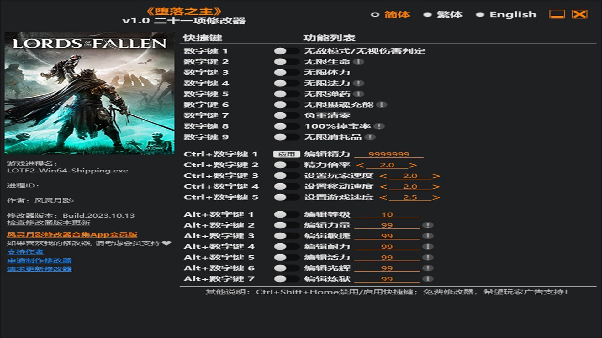 堕落之主修改器(风灵月影)给大家很完美的辅助工具,功能相当的多样精彩,给大家很出色的玩法感受,很是有趣。具体的功能介绍在页面中详细记载,很强大,很好用。喜欢的小伙伴,点击下载感受吧。