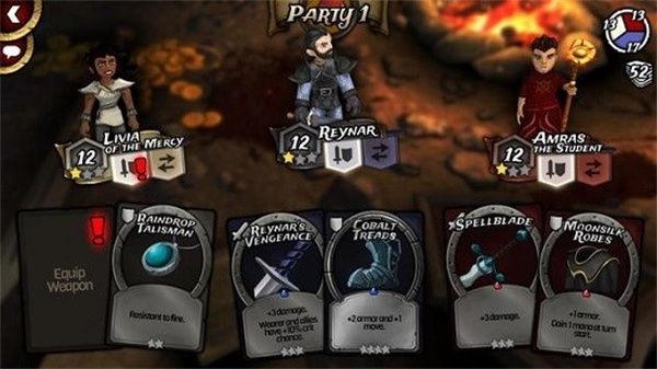 组装一群英雄,并在将他们带到战场之前分配武器,盔甲和一副技能卡片。