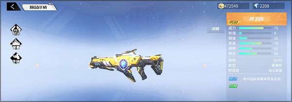 捍卫者是一把传说级的散弹,威力值有75点。它在命中目标有概率将敌人击退,弥补了散弹枪子弹分散可能因为距离太远,没办法一次性把敌人击毙的缺点。其次,这把武器稳定性是非常优秀的, 唯一不足的是子弹射速太慢了。