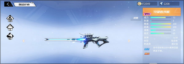 守望者-光棱是一把史诗级的狙击枪,威力值有73点。这把枪有着很典型的狙击枪特点,伤害高,稳定性高,但是便携度差。另外小编觉得这把武器的造型非常好看,角色山火装备上后真的很帅啊。