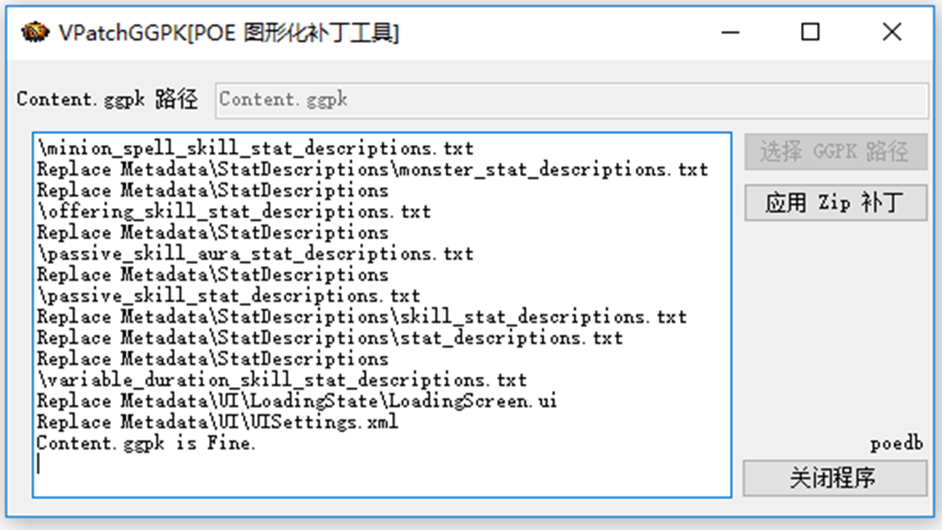 4、等待结束,看到 Content.ggpk is Fine. 提示补丁结束。