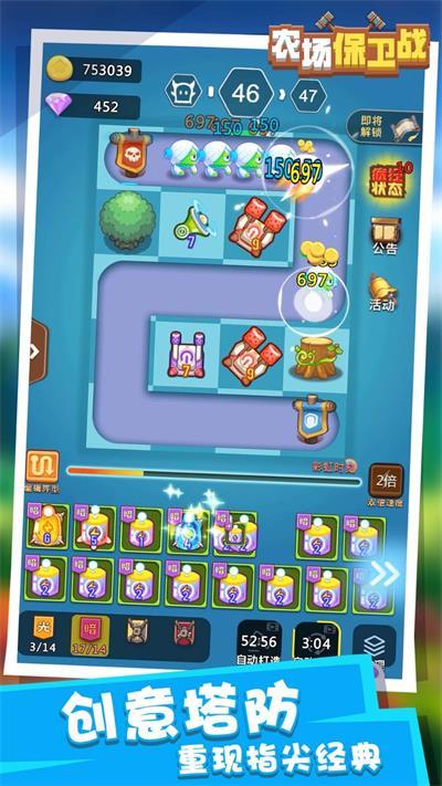 农场保卫战是一款休闲塔防游戏,游戏中玩家需要布置道具在农场物附件,并且升级和强化道具,保卫自己的辛勤劳动成果不被虫虫所破环。游戏的画面可爱,玩法简单,容易上手。感兴趣的玩家欢迎下载。