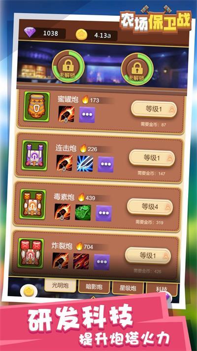 4、通过闯关获得后续进阶材料,不断升级研发炮台,提高炮台威力。