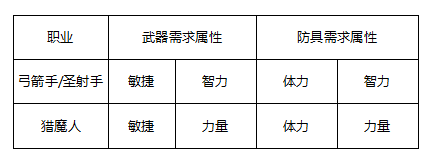 通过图表,我们可以看出,唯一不同的是魔剑士的智力需求。当然根据玩家的不同选择,可以进行不同的加点。对于影响来说,在前期如果追求高输出,就可以舍弃敏捷,来携带高阶武器,相同的防御就会降低哦~