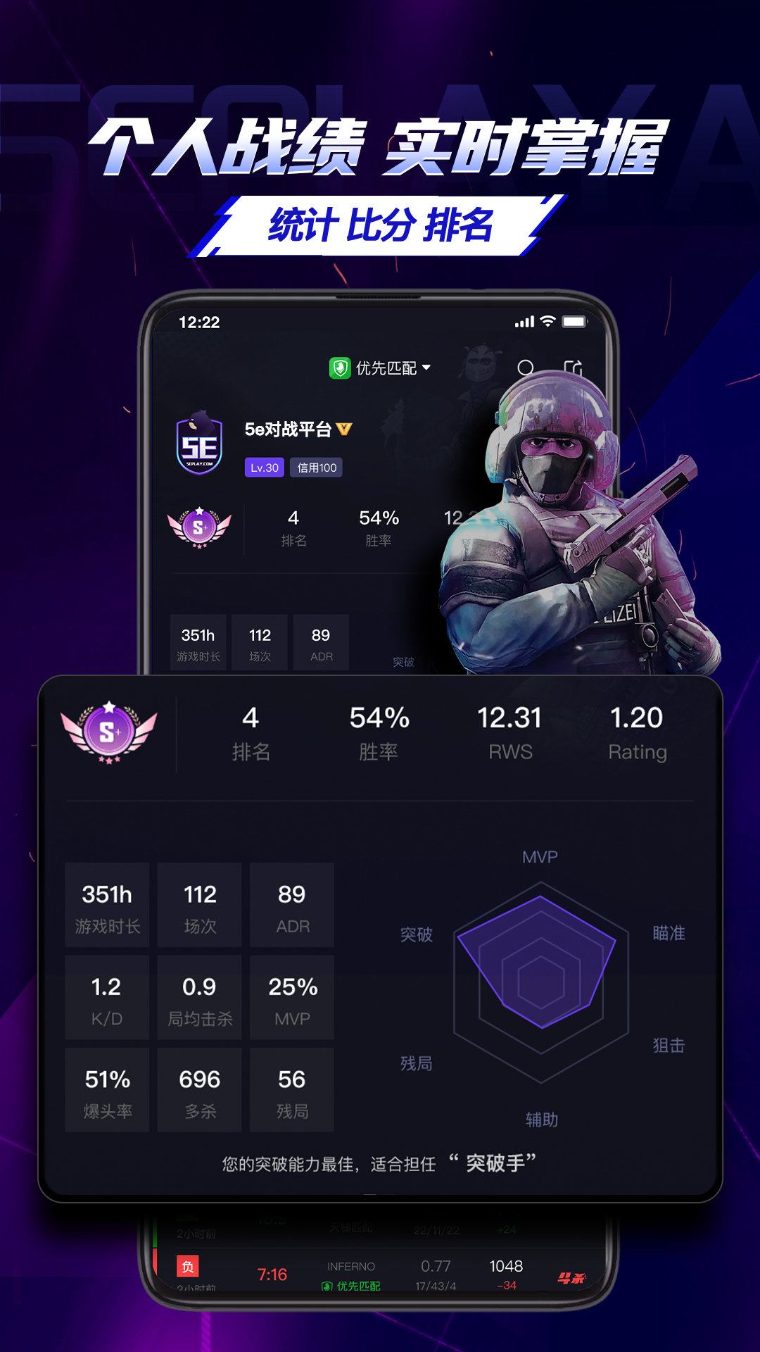 提供查询和分析玩家在5E对战平台上比赛的战绩数据。