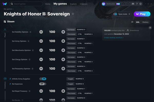荣誉骑士2修改器可以让玩家获得无限的军需,豢养最为庞大的军队。一键设置设置神职人员和宗教,打造地上神国。此外还有特殊的君主能力,对国家的经济状态,外交方式等等进行随意的修改。喜欢的小伙伴,点击下载感受吧。