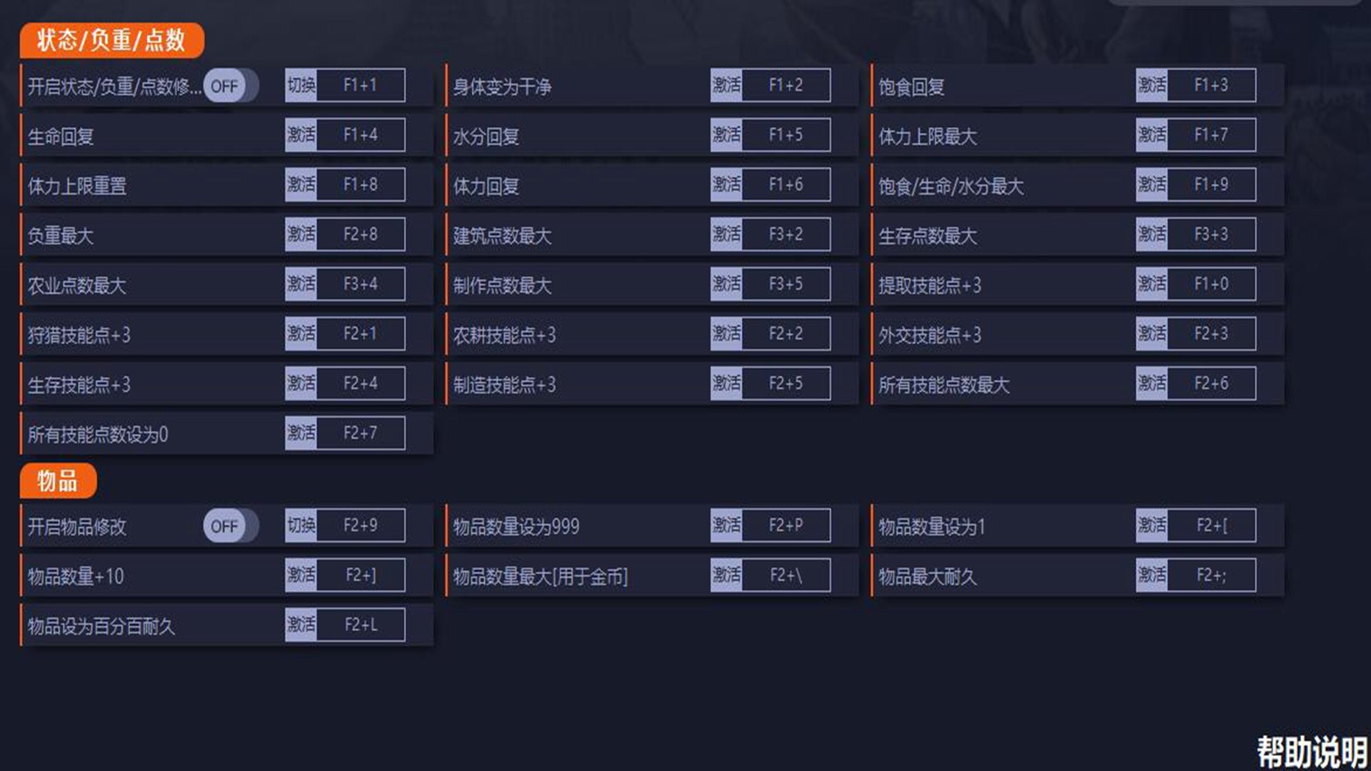 3.开启修改器各主初始项再使用各子修改项[无主初始项则不用开启][主初始项:如开启...修改]。