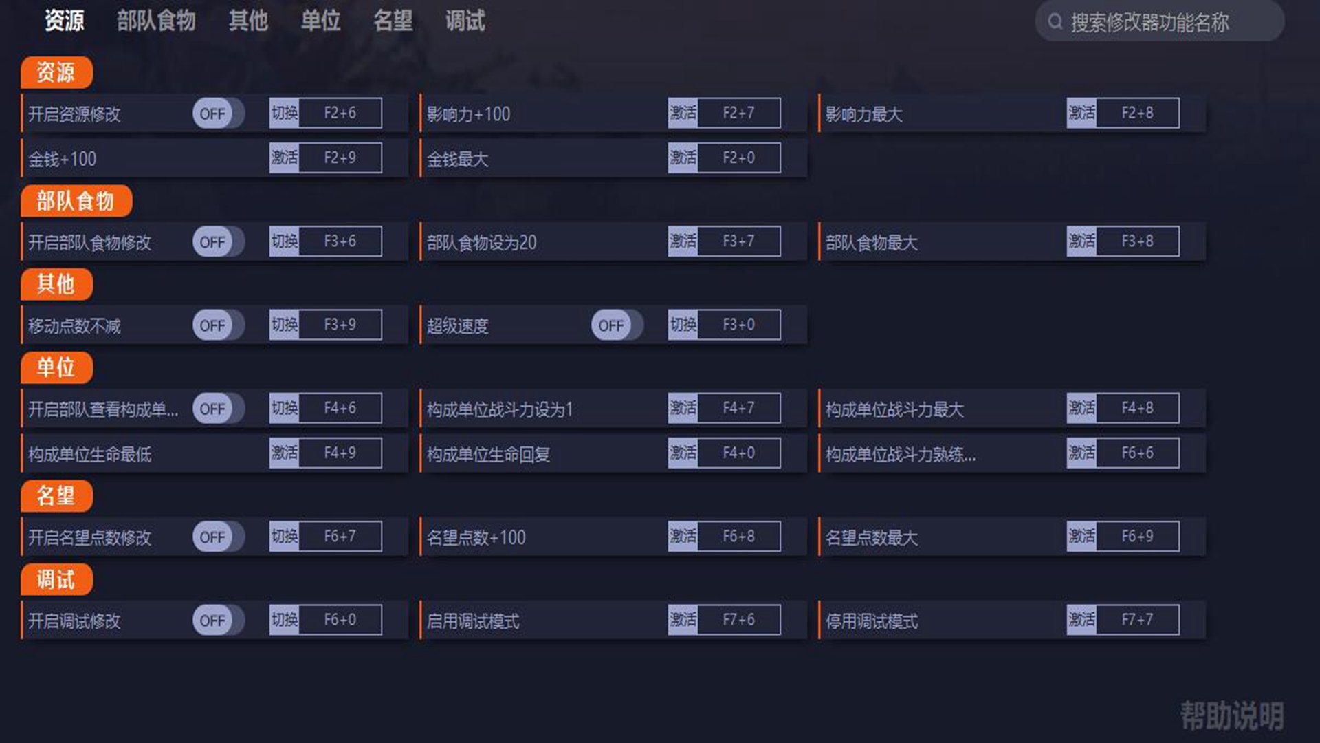 F3+6开启部队食物修改