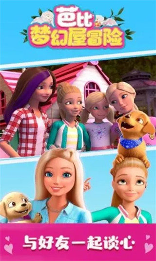 创建属于你自己的芭比梦幻屋体验!你可以设计每个房间。来认识我的死党、狗狗和爱丽莎!