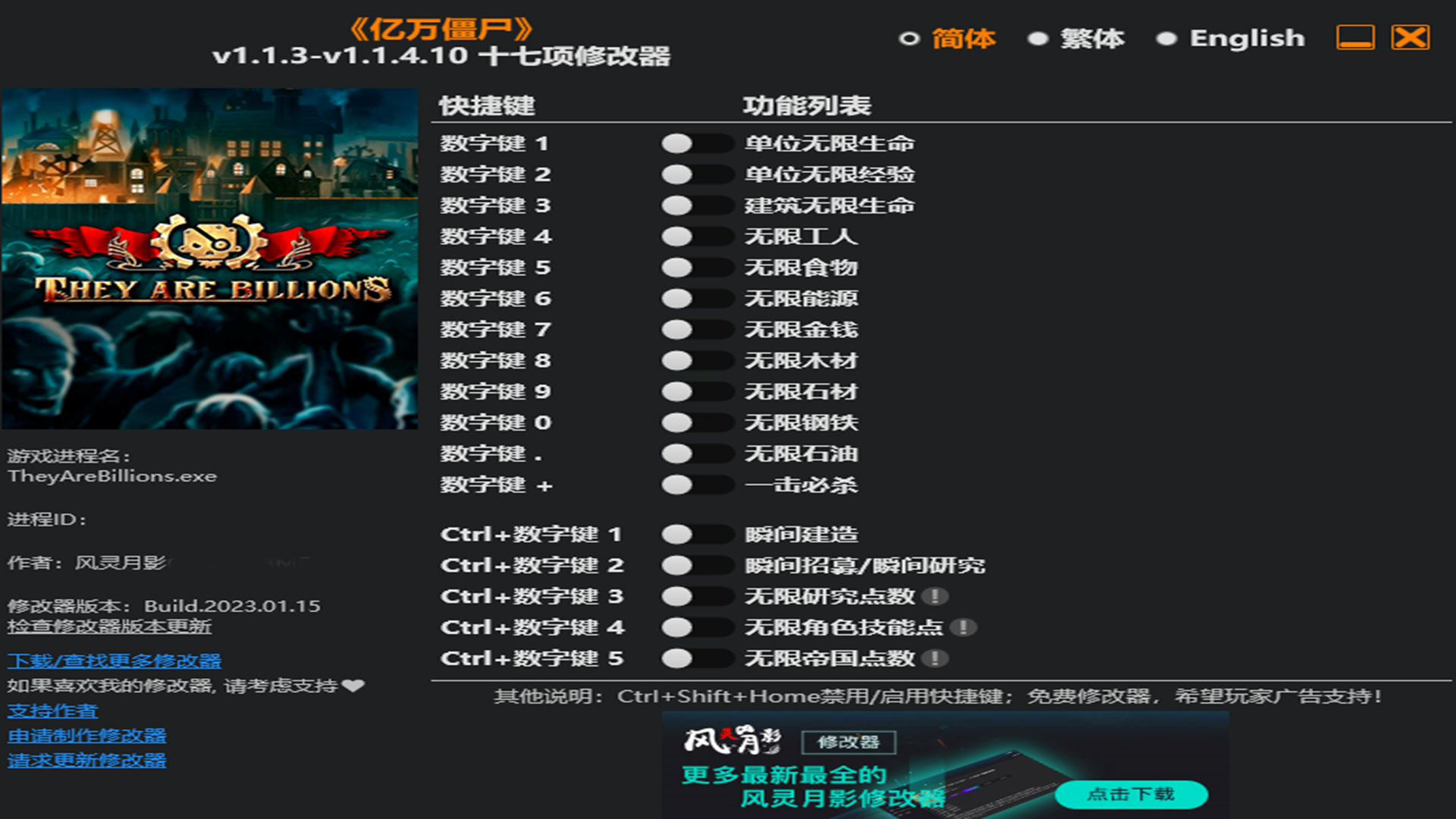 亿万僵尸十七项修改器让大家获得众多的游戏资源。各种原本稀缺的石油,木材,石材以及各种建筑能源物资,通过修改器都能敞开的供应。让你在富裕的情况下,对战无穷无尽的丧尸。喜欢的小伙伴,恐怖世界自带金手指。点击下载感受吧。