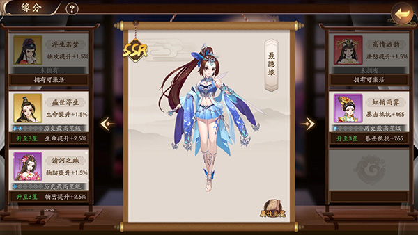 玩家一旦获取该角色,便能即刻激活缘分。缘分一经激活,会为角色带来属性加成。随着与之羁绊的人物升星,缘分也会同步升级。缘分角色以历史所达到的最高星级为准,不会因该角色的分解、重生等任何因素致使缘分降低。要是同时拥有多个同名角色,将以星级最高者作为缘分对象,激活缘分后会提升当前角色的属性。