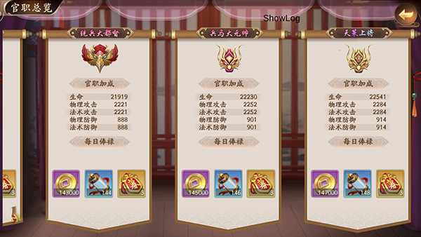 官职除了属性加成之外,还能享受到更多其他福利,玩家每天可在官职系统内领取一次俸禄奖励,玩家还能在官职系统内享有特惠宝箱的福利。