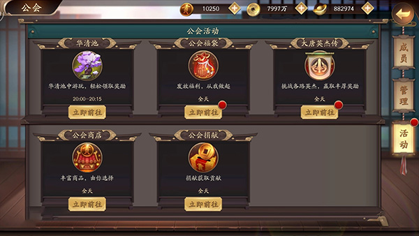 《风月幻想》中公会不仅方便了玩家间的团体交流,还为玩家提供了诸多活动,活动不仅有益于公其建设,还有更多福利奖励。