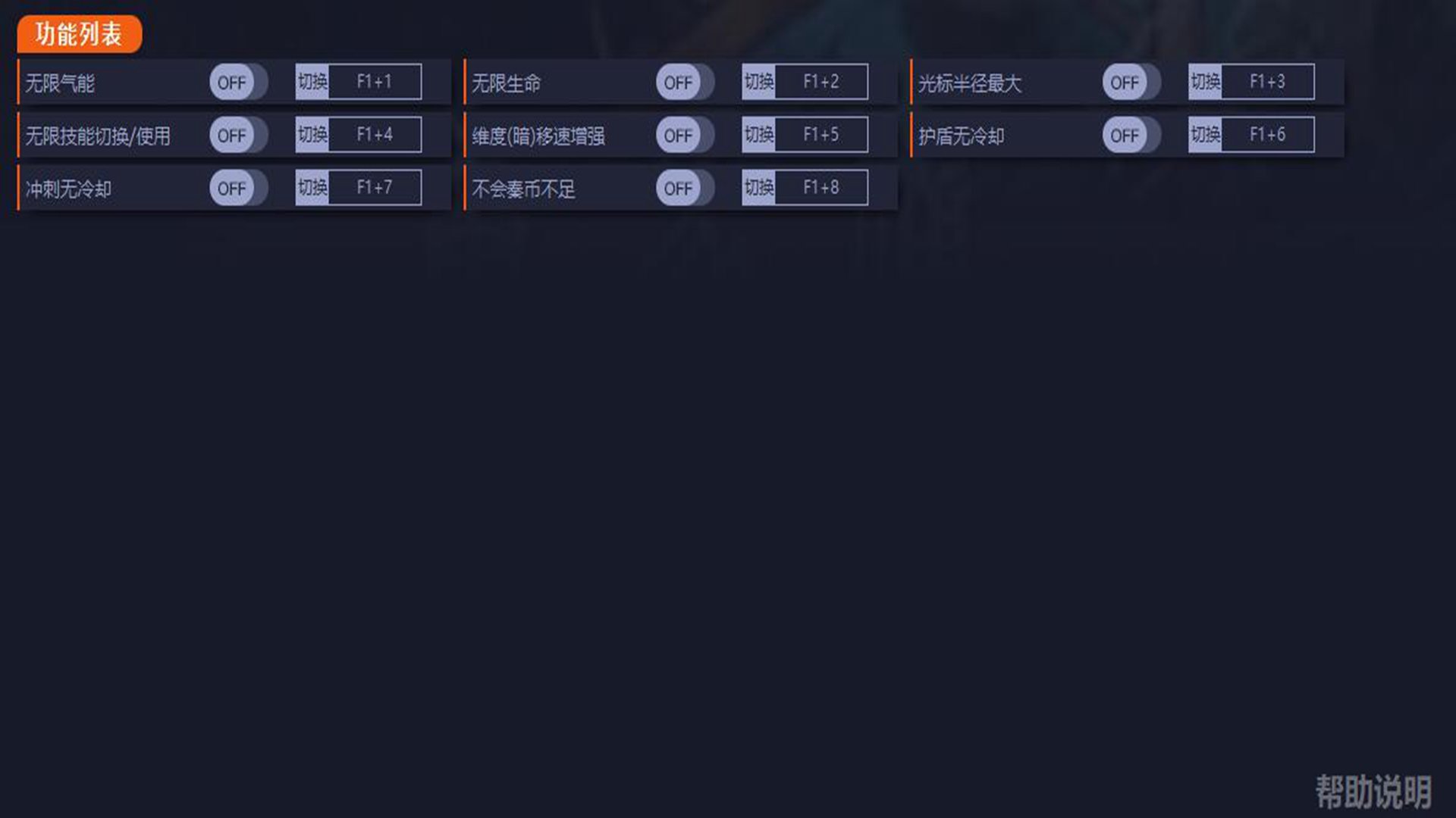 3.开启修改器各主初始项再使用各子修改项[无主初始项则不用开启][主初始项:如开启...修改]。