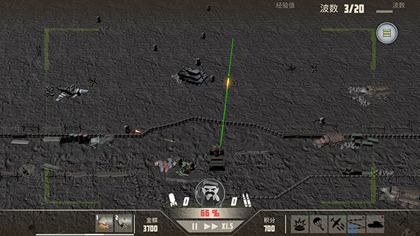 5、右上角显示的是当前波数和总波数,越到后面,敌人的进攻越猛烈。