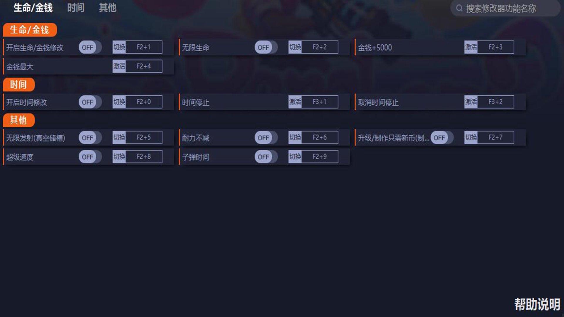 3.开启修改器各主初始项再使用各子修改项[无主初始项则不用开启][主初始项:如开启...修改]。