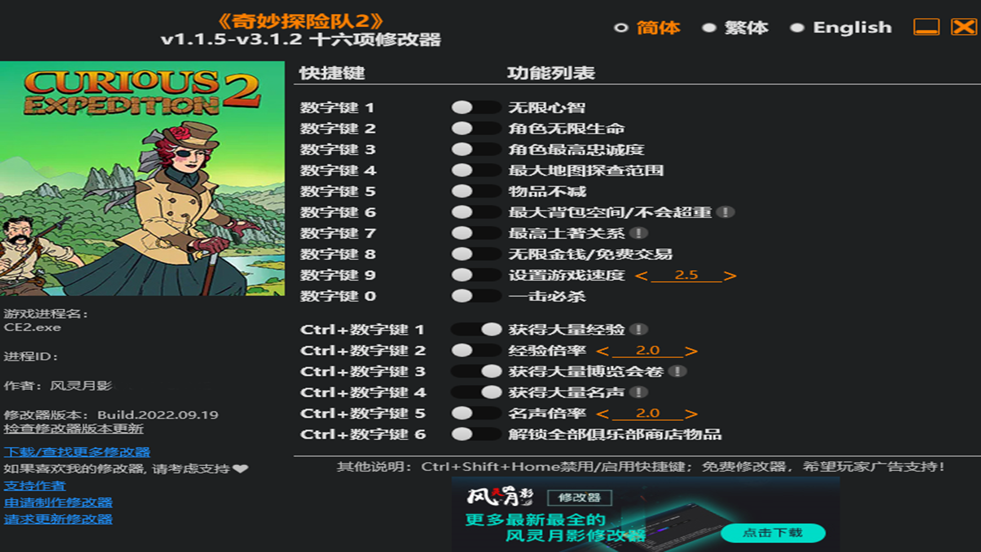 奇妙探险队修改器能针对游戏中的各种属性数值进行修改,例如玩家角色的心智,手下的忠诚度,以及金钱的数量,物品的数量。风灵月影出版的修改器,能为大家提供安全绿色的下载资源。喜欢的小伙伴,点击下载感受吧。
