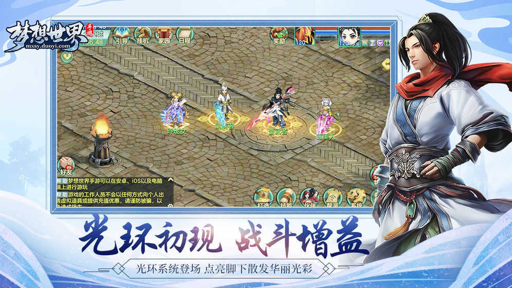 梦想世界官网版是一款趣味十足的动作格斗扮演游戏,在游戏中玩家可以选择适合自己的的职业与角色,每一个职业、角色都有不同的特点,玩家需要不断提升自己的实力,适应不同的战斗环境,完成各种任务和挑战。
