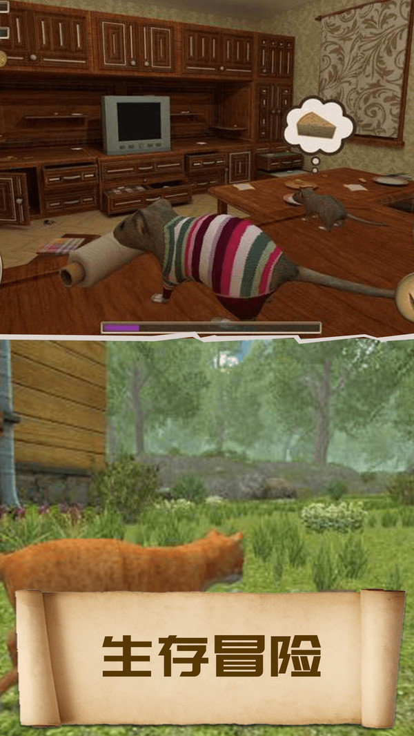 1、玩家扮演的是一只无忧无虑小老鼠,不过日常还会需要觅食来维持生计。
