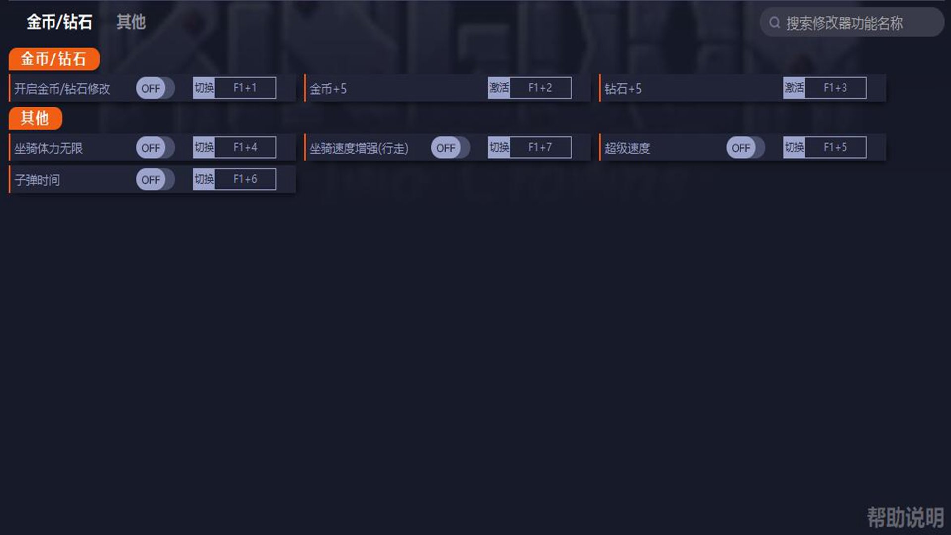 3.开启修改器各主初始项再使用各子修改项[无主初始项则不用开启][主初始项:如开启...修改]。