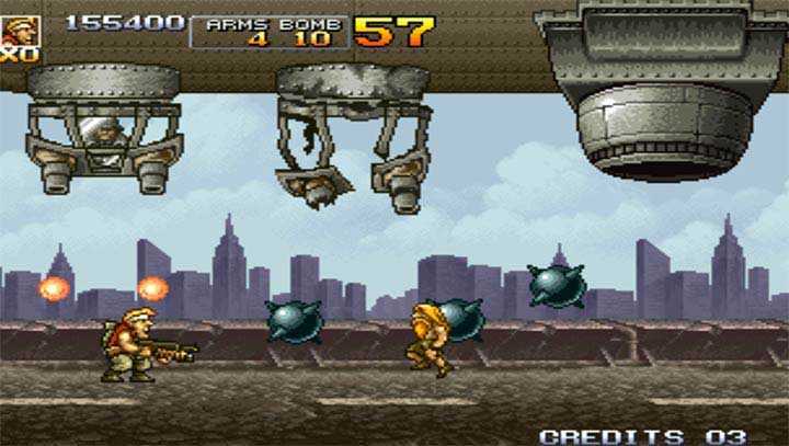 合金弹头4街机版是一款横版射击游戏,游戏背景设定在战争中,玩家需要操控风鹰侠等角色,潜入敌人的老巢,击毁各种机械BOSS,完成任务。游戏还设有双人模式,玩家可以邀请朋友一起合作闯关。