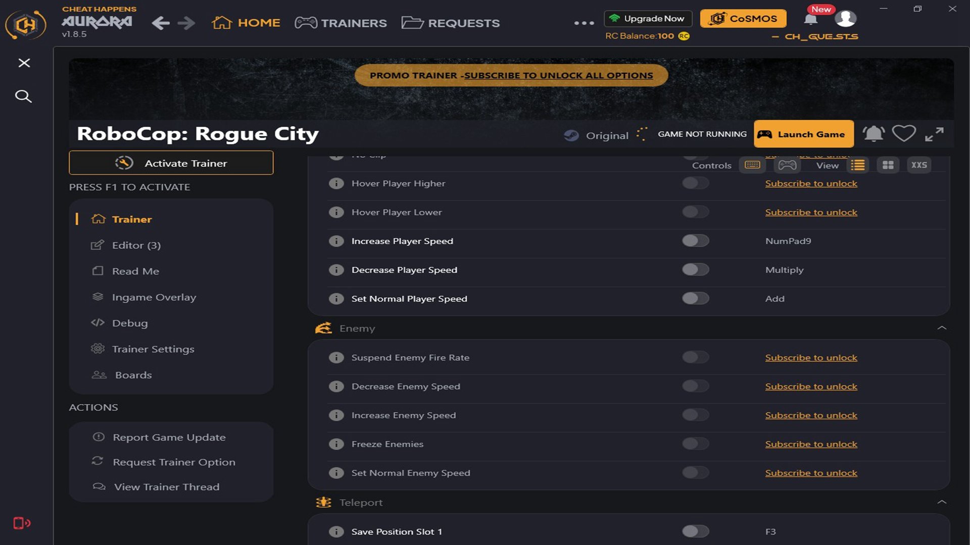 机械战警修改器可以帮助玩家将遇见的敌人,玩弄于股掌之中。你能一键暂停敌人的射速,让其半天开不了一枪,还能减低速度,或者直接对敌人进行冻结。此外还有穿墙,隐身,飞行等能力。CHEATHAPPENS玩家自制版本,点击下载不要错过。