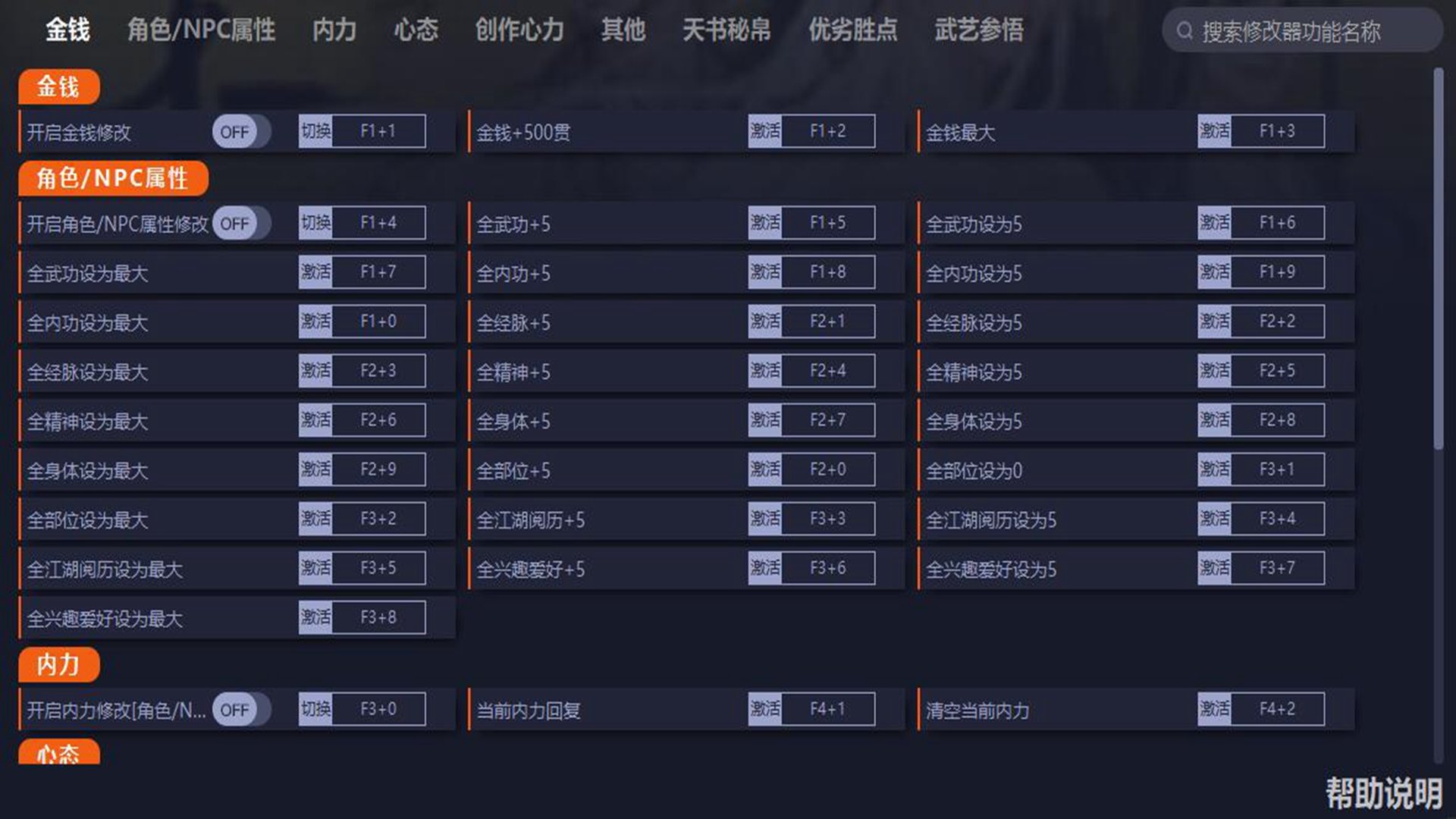 F3+0开启内力修改[角色/NPC]