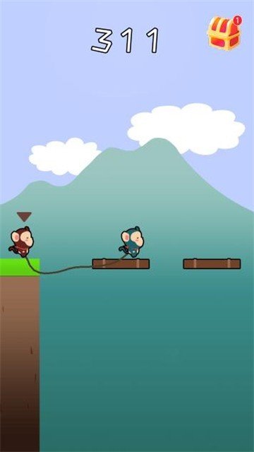 1、在哥俩好游戏中,您需要控制两只小猴子不断跳跃,注意沿途的熊和鱼,它们会对您造成很大的伤害