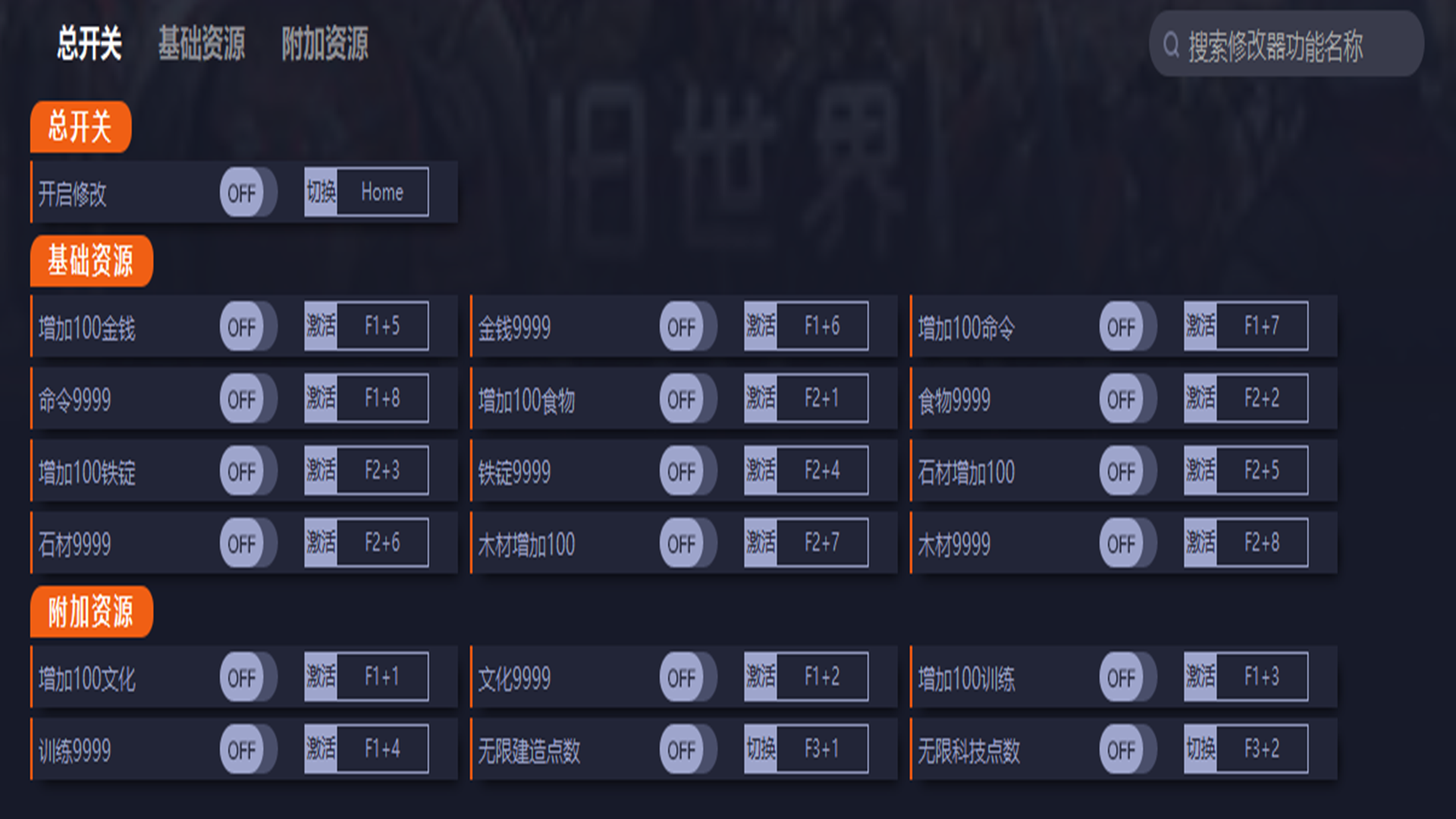 F3+1:无限建造点数F4+2:无限科技点数