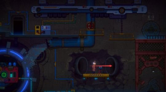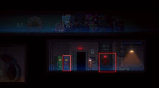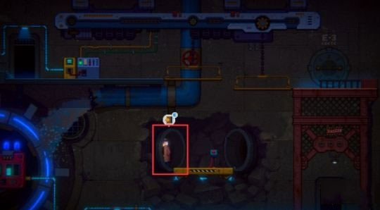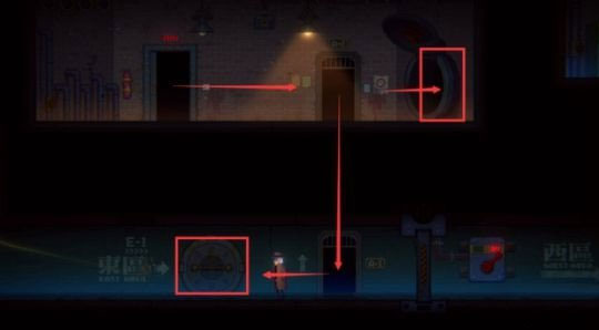 8、出来后沿箭头往下入去E-1,或者一直往右走进入管道,把升降梯放下,两种方式都能回去。