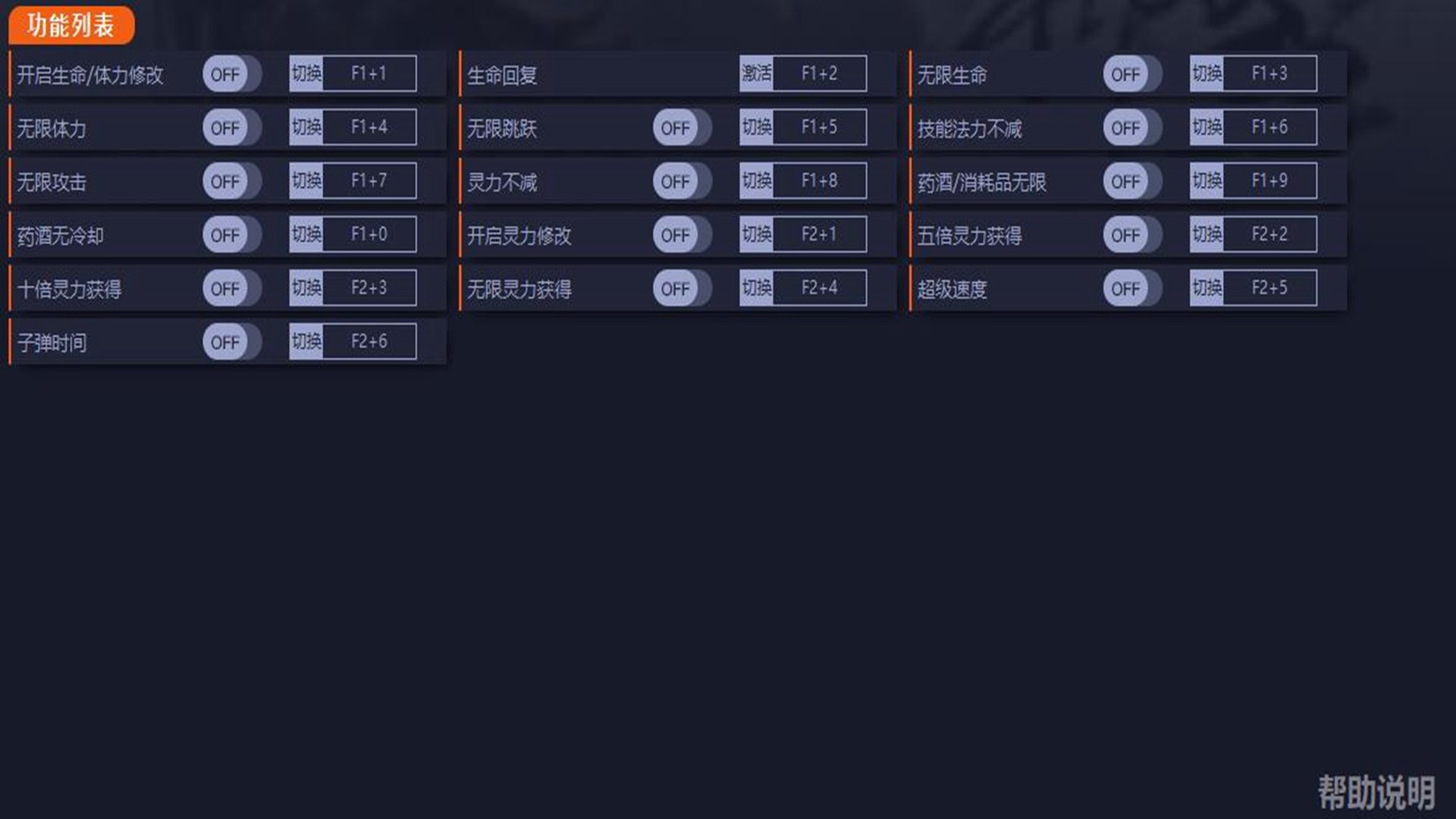 3.开启修改器各主初始项再使用各子修改项[无主初始项则不用开启][主初始项:如开启...修改]。