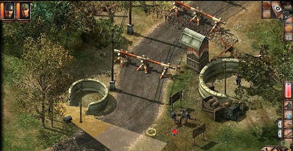 1、第一个关卡是基础训练,首先,控制一个士兵,鼠标点击地面可以指定目的地,之后他就会开始移动,注意敌人的视野,不要出现在敌人是视野中,避免和敌人交火。绕到敌人后面后,将鼠标移动到敌人身上,选择攻击,一击即可将敌人击倒,然后按Shift便可将其拖拽,一般只要将尸体放在掩体后面就可以避免敌人察觉。
