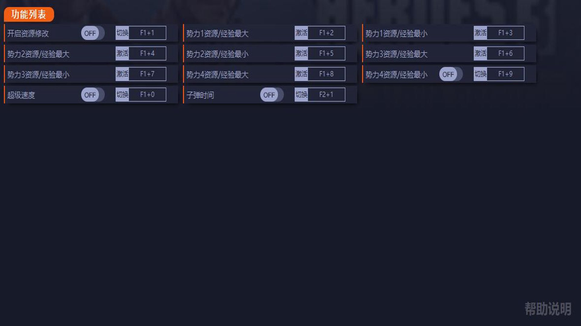 3.开启修改器各主初始项再使用各子修改项[无主初始项则不用开启][主初始项:如开启...修改]。