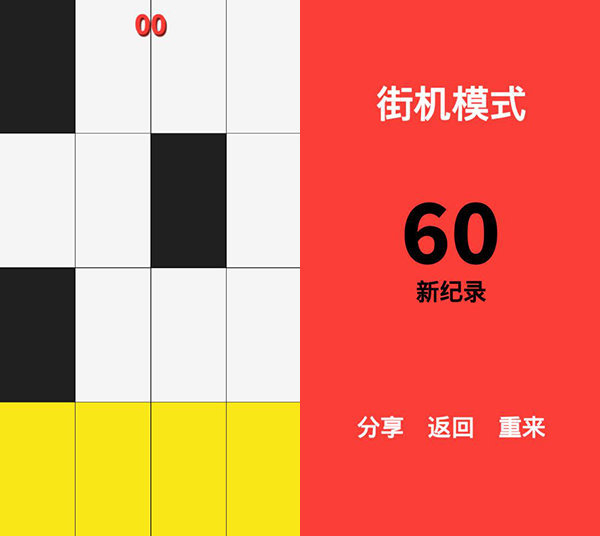 3、考验玩家手眼协调能力的游戏,在快节奏的游戏中,玩家需要高度集中注意力,准确地点击黑色块儿,同时避开白色块儿,这需要玩家快速而准确地做出反应,以取得高分。