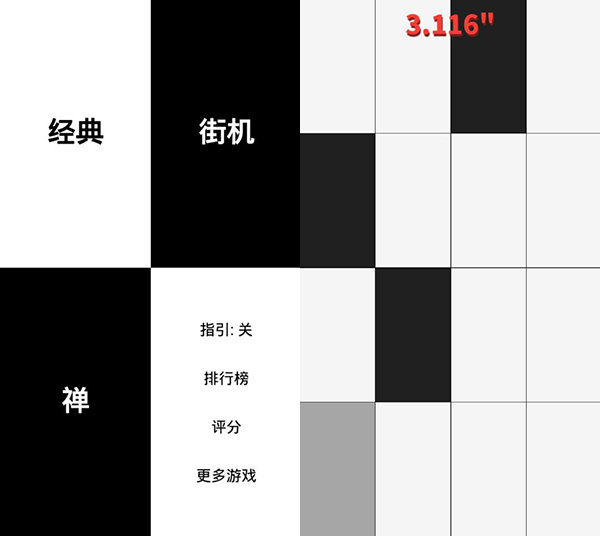 多种各具特色的游戏模式,经典模式是最基础的模式,挑战玩家的反应能力和手速,时间模式规定了一定的时间内需要点击的黑块儿数量,要求玩家在有限的时间内获得尽可能高的分数,每种模式都带来了不同的挑战和快感,让游戏更加多样化。