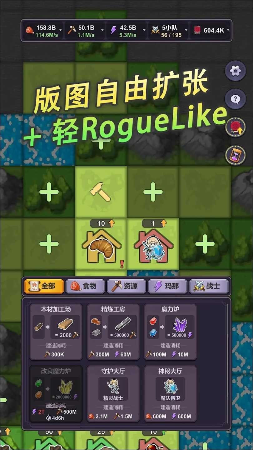 初级建筑虽然产量低,但却能为周围的更高级的建筑提供原材料。在有限的领地内,打造出最优的生产供应链,使得王国的资源百倍、万倍地增长。