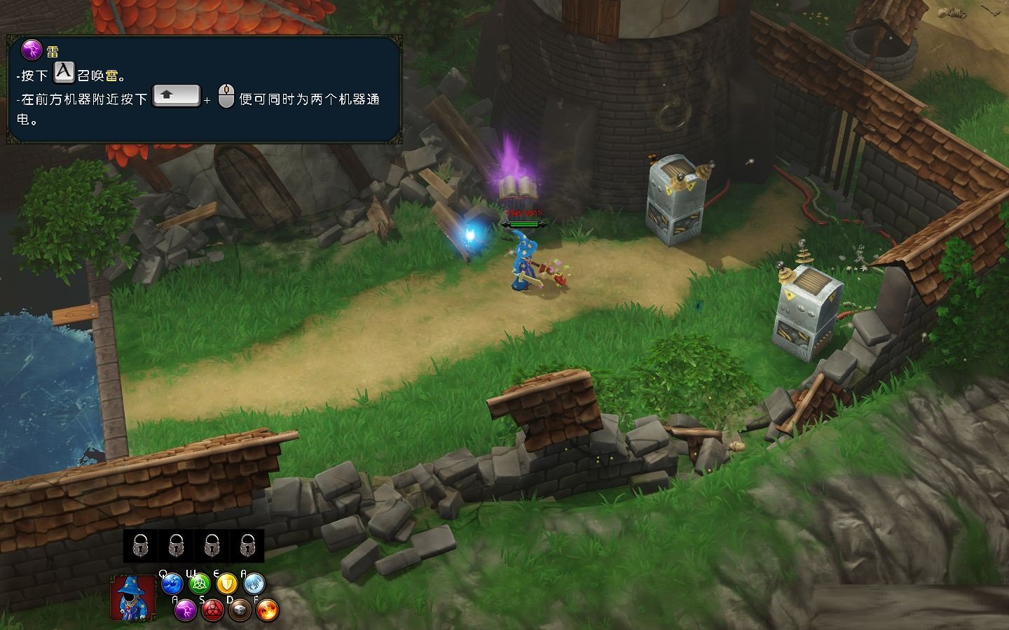 5、特殊状态:身上有水时不能放电;身上有火时不能施法,而且会持续掉血;身上有雪时会降低移动和施法速度