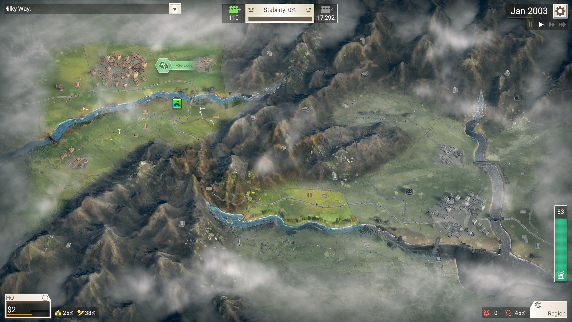 如果您读过另一个主题“战争不是答案”,那么它们绝对是正确的。即使叛乱分子蜂拥而至,您也需要投资于民政计划。在中期游戏中,您始终将处理忧虑和打击腐败作为头等大事,并将用于打击叛乱分子的资金降至最低。那将开始稳定区域。
